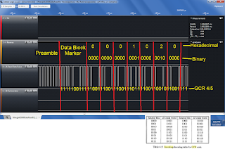 Note that NEITHER of these 5-digit codes exist in the GCR 4/5 table above? That's good to know that they're using unique characters. As you see below, however, the separation between the end of the preamble and the beginning of this marker was tricky to identify.