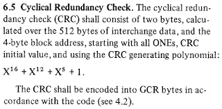 "The GCR nibble 00101 shall be converted to the data nibble 1111 to form the data field for CRC generation and checking." Even better to know, for when we test the CRC formulas.