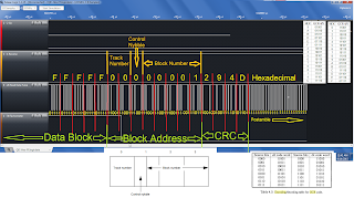The block address consists of a 4-Byte block address with track number, a control nibble and block number starting with 1 on each track.